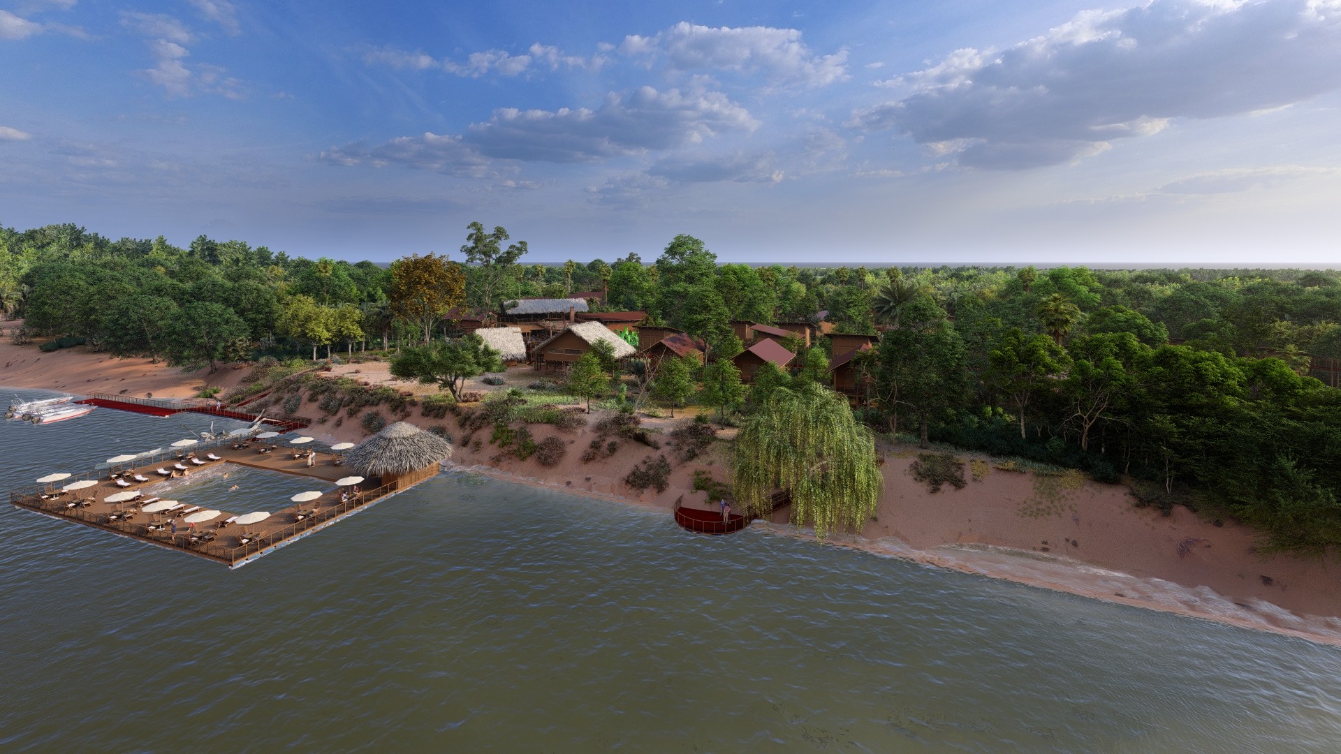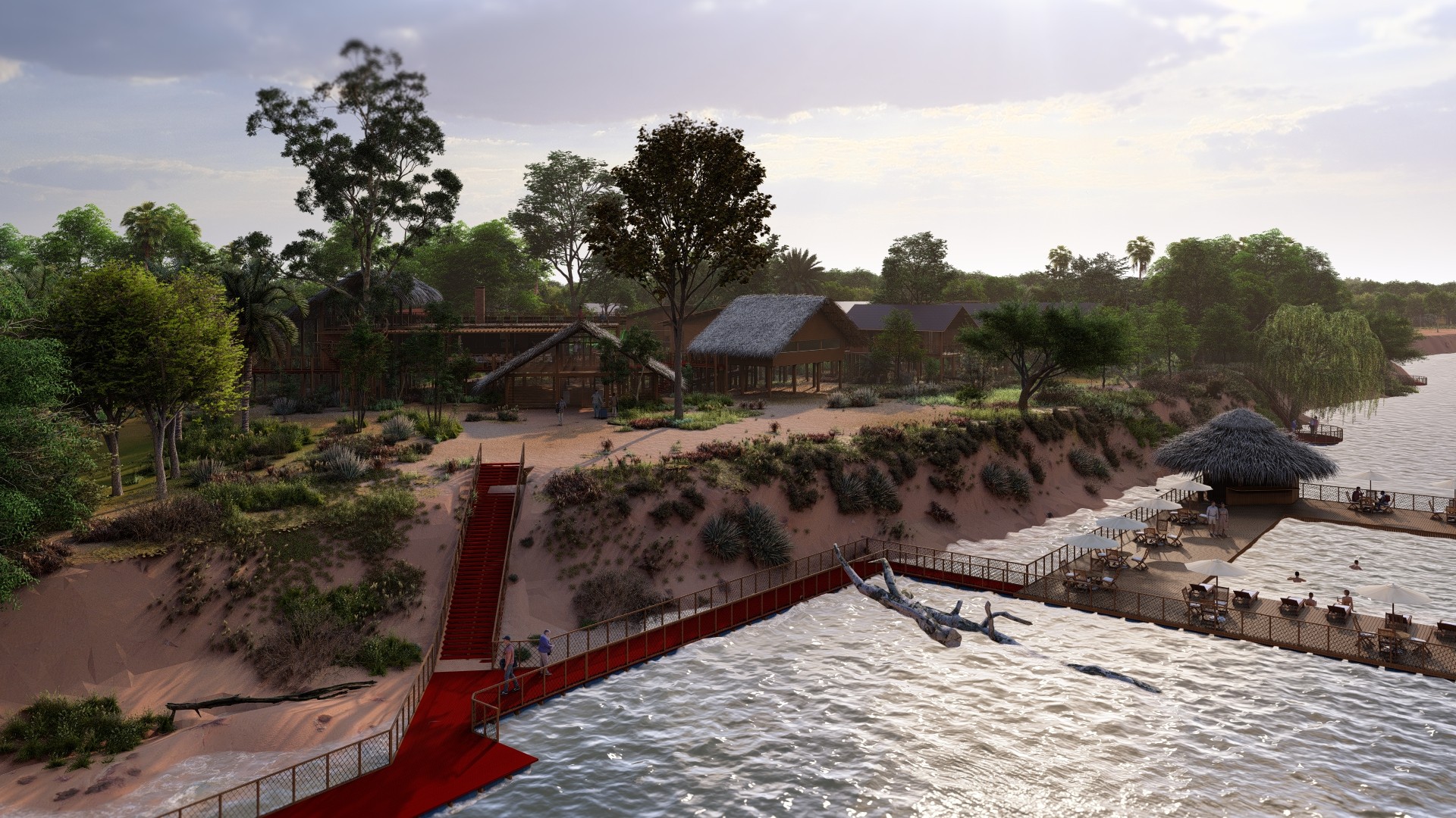 O Araguaia Lodge foi projetado para integrar-se perfeitamente ao ambiente, respeitando o ciclo natural das águas e utilizando materiais sustentáveis. A arquitetura local é inspirada nas técnicas tradicionais das comunidades ribeirinhas e indígenas, combinadas com tecnologias modernas e ecológicas.